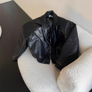 韩版黑色pu皮垫肩短款皮衣夹克男款潮流休闲高级黑色拉链外套上衣