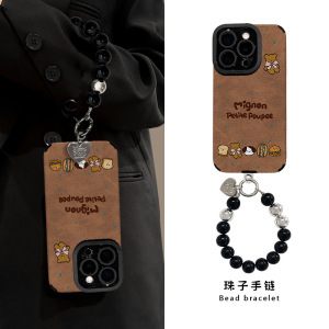 泼墨小熊手链适用苹果17手机壳iphone16promax复古14硅胶15羊皮13