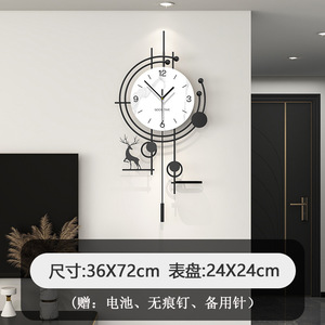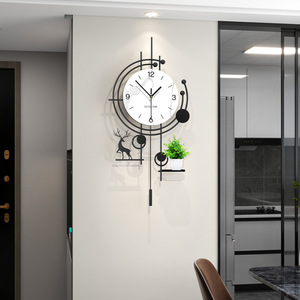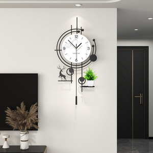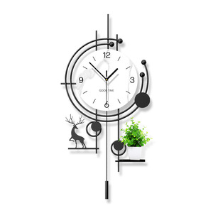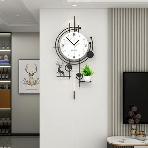 现代简约置物架钟表客厅高级感家用装饰挂钟创意免打孔时钟表挂墙