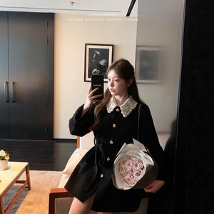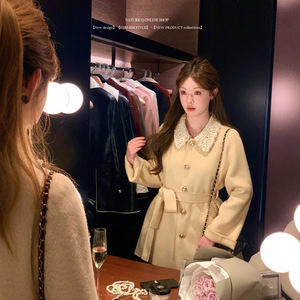 杨小卷1OO羊毛miu系千金感双面呢大衣女短款系带收腰翻领毛呢外套