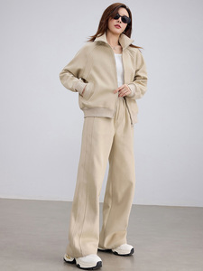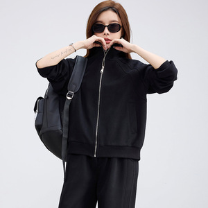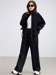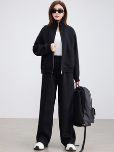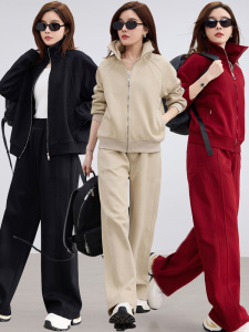 挺阔质感休闲运动套装女2025秋装立领卫衣开衫松紧腰阔腿直筒裤潮