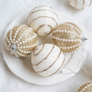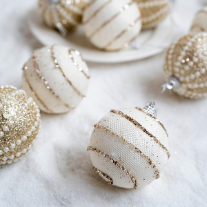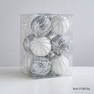 跨境新品圣诞节装饰品8cm香槟色银色彩绘泡沫球套装圣诞树挂件