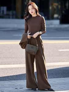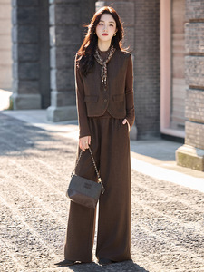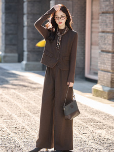 时尚咖色老钱风气质马甲套装女2025秋新款时尚休闲阔腿裤三件套