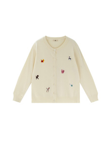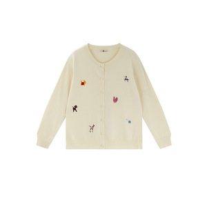 烟台双天2025新款大码女装秋200斤显瘦时尚卡通刺绣针织开衫F388