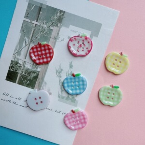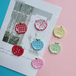 小清新格纹蝴蝶结苹果纽扣四眼印花工艺扣服装洞洞鞋鞋花发饰配件