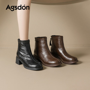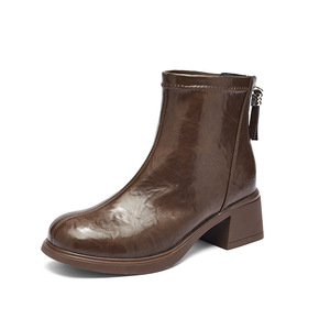 奥古狮登棕色短靴女2025新款秋季巨好看切尔西靴粗高跟中筒瘦瘦靴