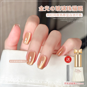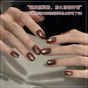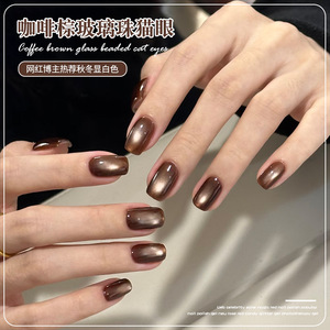 2025年新款秋冬咖啡棕玻璃珠猫眼指甲油胶显白美拉德晶石美甲专用