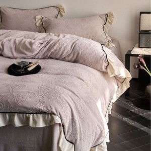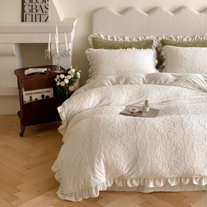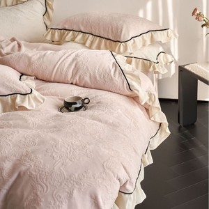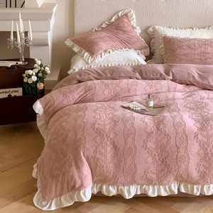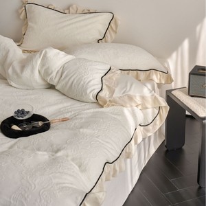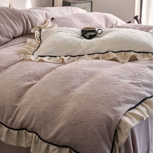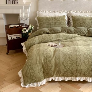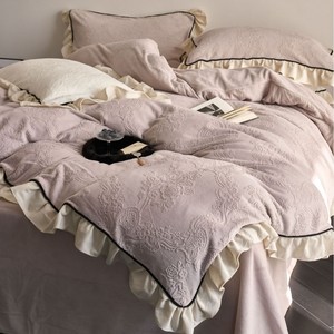 复古风冬季牛奶绒四件套法式立体雕花绒荷叶边珊瑚绒加厚被套床品