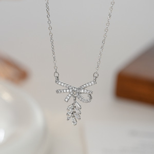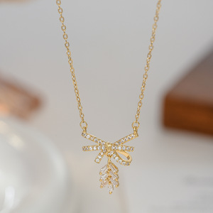 真金电镀微镶锆石气质锁骨链女小众设计感流苏蝴蝶结项链轻奢颈链