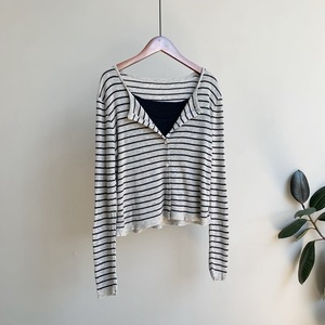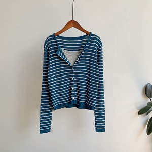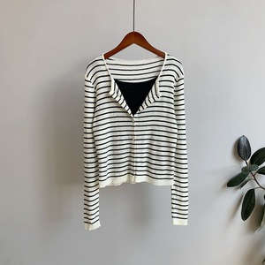 实拍◆大方羊毛撞色条纹长袖针织开衫女秋叠穿内搭吊带上衣两件套