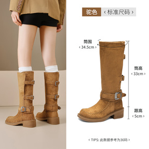 奥古狮登棕色长筒靴女2025新款秋冬堆堆西部时装靴子高筒骑士长靴