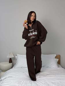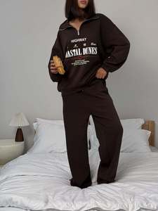 美拉德冬季宽松显白休闲套装时尚洋气字母印花拉链高领卫衣长裤