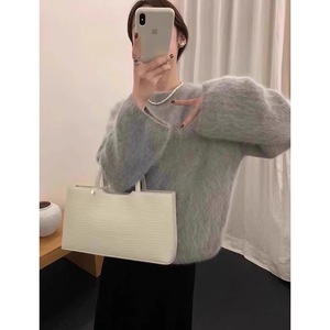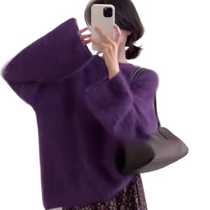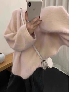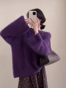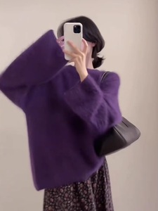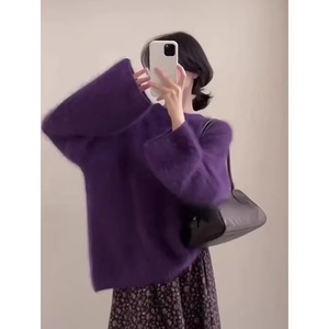 软糯奶紫色水貂绒套头毛衣女秋冬外穿宽松慵懒毛茸茸针织上衣