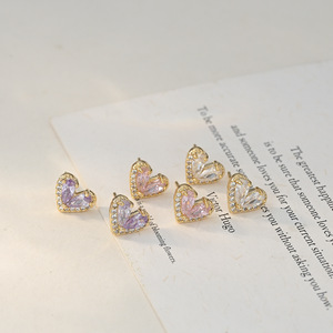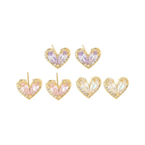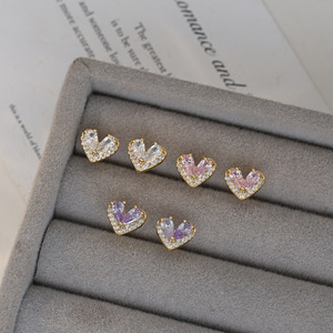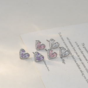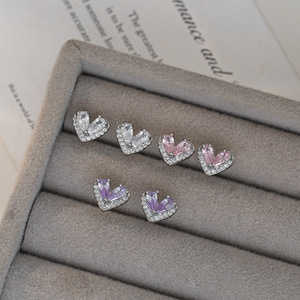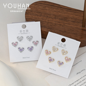 S925银针一卡三对套装耳钉女彩色锆石爱心耳饰品精致学生耳坠批发