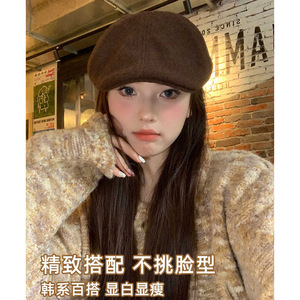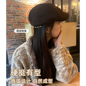 自留款~日系毛呢贝雷帽子女秋冬百搭复古前进帽时尚画家帽工体帽