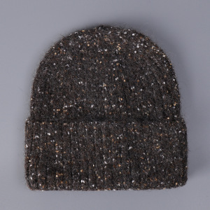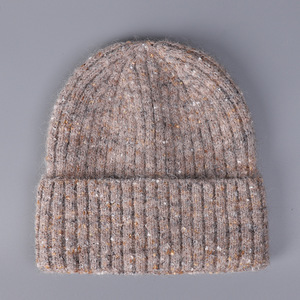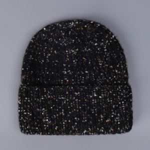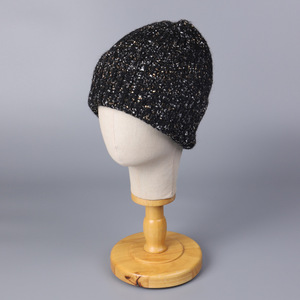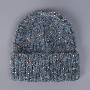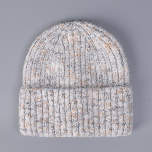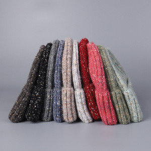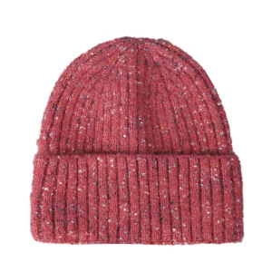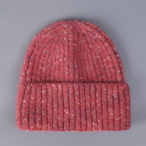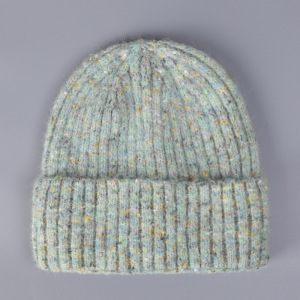 韩版混色彩色点毛线针织套头帽男女通用日系简约卷边护耳毛线帽冬