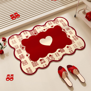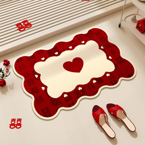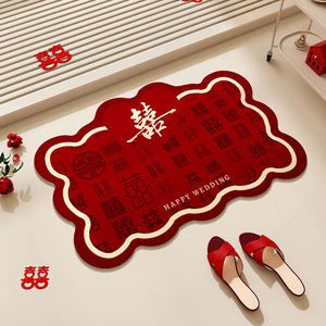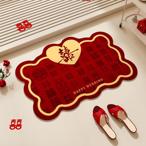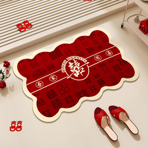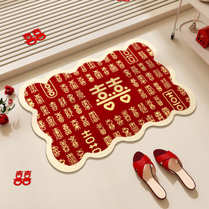 结婚红色喜庆地垫新婚囍字装饰地垫吸水防滑浴室吸水垫玄关垫代发