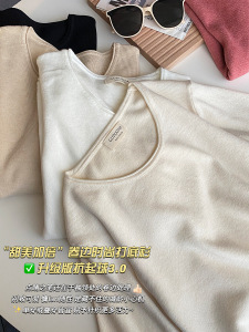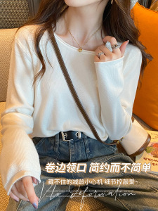 奶油杏圆领高级感针织打底衫女2025秋季修身内搭chic长袖上衣毛衣