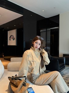 2025秋季新款卡其色立领长袖短款工装宽松休闲外套夹克上衣女chic