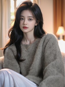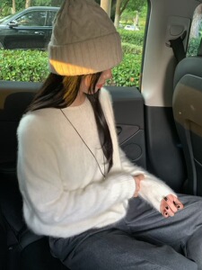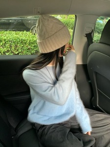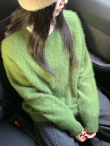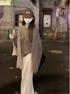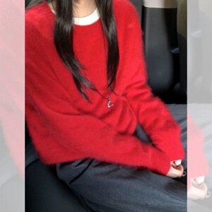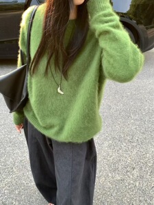 韩系秋款仿貂绒毛茸茸宽松显瘦毛衣女圆领套头针织衫简约基础内搭