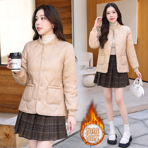 加绒加厚内胆棉衣短款2025修身秋冬新款保暖羽绒棉服妈妈棉袄外套