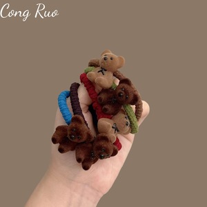 可爱熊头公仔小发圈新款牛仔布艺高弹力扎马尾儿童发饰百搭女发圈