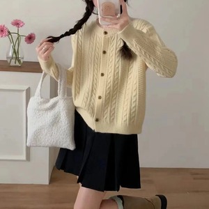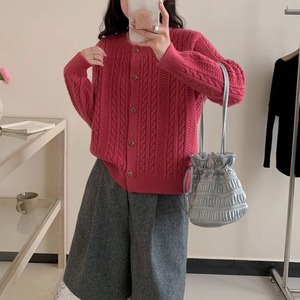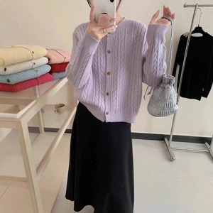 韩系秋冬圆领复古玫瑰扣麻花百搭针织开衫女新款单排扣高级感毛衣