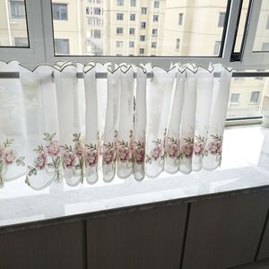 嫣然 立体绣花特丽纶成品窗帘厨房窗纱咖啡帘半帘 厂家批发