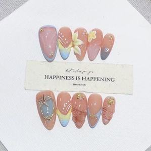 黛月达 纯手工穿戴甲秋冬新款B328全手绘雕花气质外贸款美甲贴片