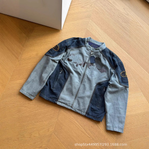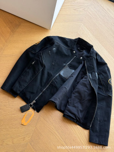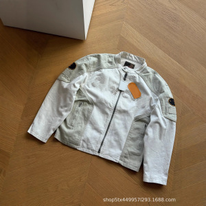 sup美式复古夹克男女机车皮革徽标贴花字母休闲宽松拉链夹克外套