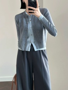 假两件长袖针织衫女2025新款秋冬时尚高级感洋气显廋针织开衫上衣