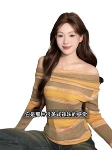 一字肩针织长袖上衣女韩系条纹早秋多巴胺修身显瘦内搭毛衣打底衫