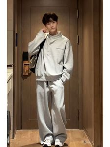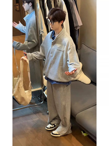 麻灰色韩系学院风休闲套装男秋季少年感慵懒风卫衣卫裤一整套穿搭