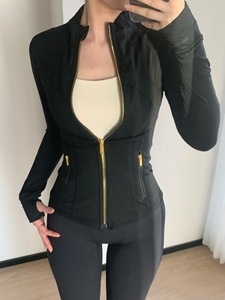 现货lulu同款define金拉链长袖外套夹克瑜伽服运动上衣紧身显瘦