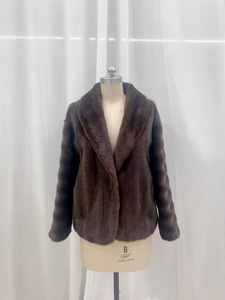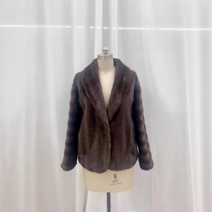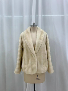 跨境专供厂家批发大毛领短款修身外套环保欧貂女毛绒大衣皮草外套