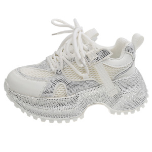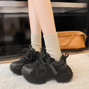 欧洲站满钻老爹鞋女2025春夏新款厚底内增高女鞋百搭透气网面凉鞋