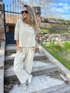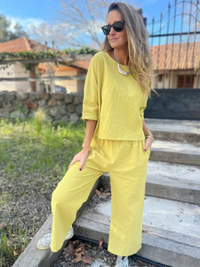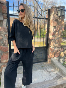 亚马逊跨境欧美新款夏季女装休闲宽松纯色短袖套装口袋长裤两件套