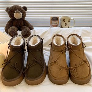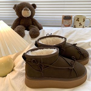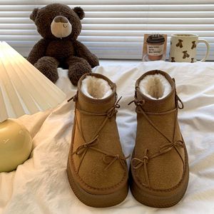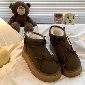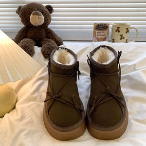 厚底蝴蝶结大头雪地靴女款冬季2025新款加绒短靴皮毛一体东北棉鞋