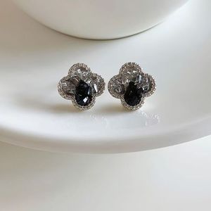 四叶草耳钉女2025新款轻奢气质高级感黑色渐变水晶耳环冷淡风耳饰