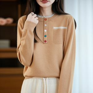圆领长袖针织衫女2025秋冬新款时尚韩系舒适毛衣洋气优雅女装上衣