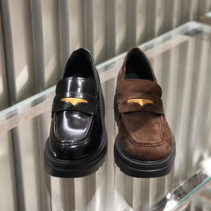 牛皮版~厚底金币麂皮乐福鞋2025款英伦风厚底小皮鞋增高粗跟单鞋
