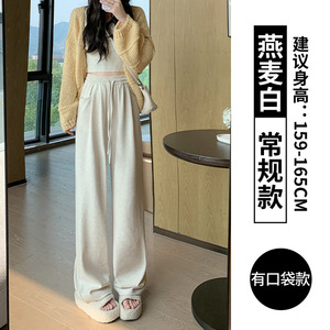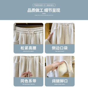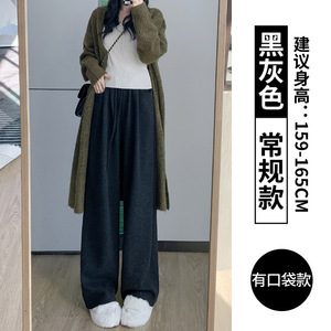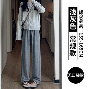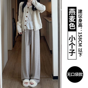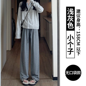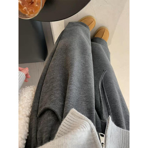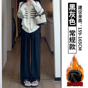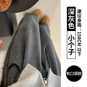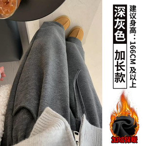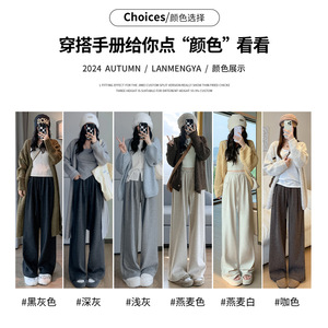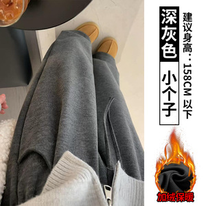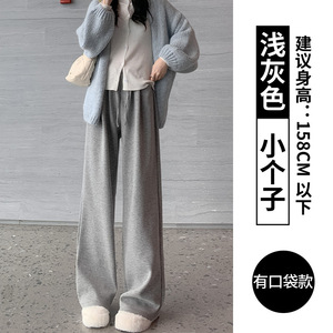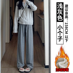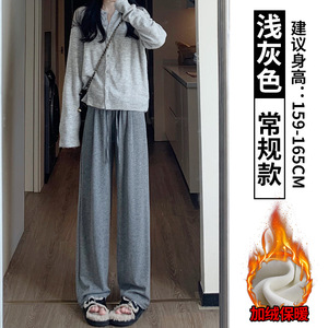 灰色糯米裤女春秋2025新款秋冬加绒直筒垂感慵懒宽松小个子阔腿裤