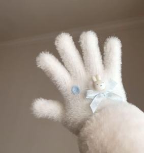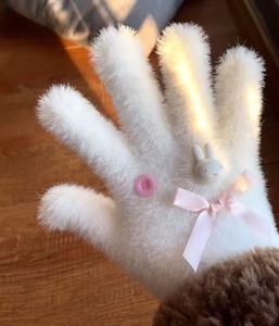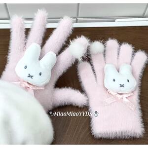 高颜值米菲兔手套合计毛绒防风抗寒保暖全包分指手套