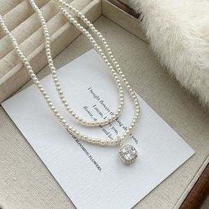 法式复古方块锆石吊坠珍珠项链女轻奢串珠小众百搭高级锁骨链颈链