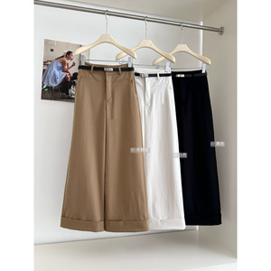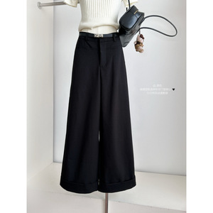 老钱风松弛感卷边直筒休闲裤女2025秋天新款高腰宽松显瘦阔腿长裤