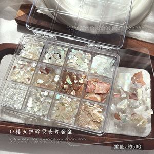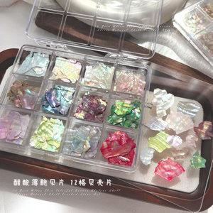 12格螺钿贝壳片美甲饰品跨境爆款天然幻彩薄碎片手工diy材料配件
