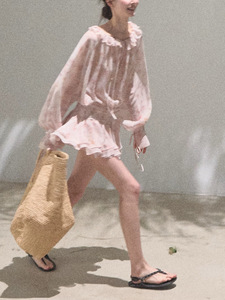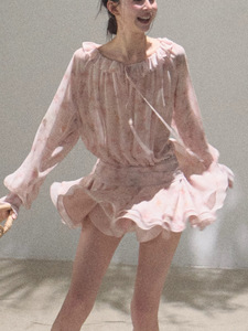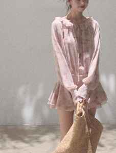 OAKMOO/ "心爱的意义" 晕染印花宽松绑带荷叶边设计感连衣裙女