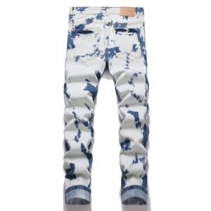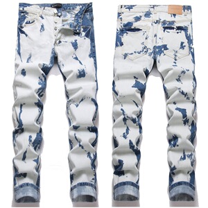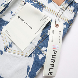 亚马逊外贸街潮purple美式拼色蓝白潮流青年男式修身小脚牛仔长裤