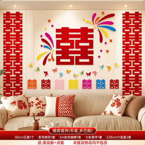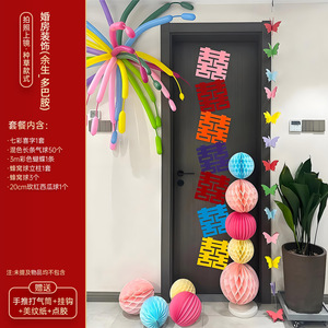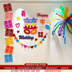 多巴胺婚房布置结婚专用男女方卧室装饰婚礼客厅晨袍背景喜字kt板