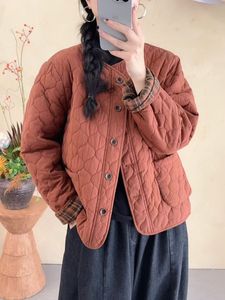 2025 秋冬新款圆领文艺通勤压格休闲棉服 宽松日系百搭拼色外套